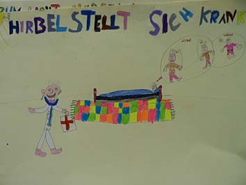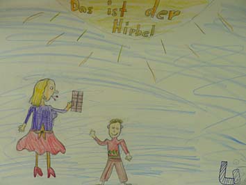 Der Hirbel ist ein kranker Junge, der so komische Sachen macht. Er klettert auf einen Baum, worauf die Leiter Angst bekommen und sagten: „Oh, du fällst ja vom Baum!“ Ich finde es schade, das es kein Happy End gegeben hat und ich wüsste gerne, wo Hirbel nachher gelebt hat. Ich denke, er ist in eine Klinik gekommen, dann haben sie ihn in die nächste Klinik geschickt und so weiter....... In Erinnerung wird mir sicher bleiben, dass er krank gewesen war und dass er immer abgehauen ist. Ganz sicher bleibt mir die Erinnerung, dass er nie gesund geworden ist.