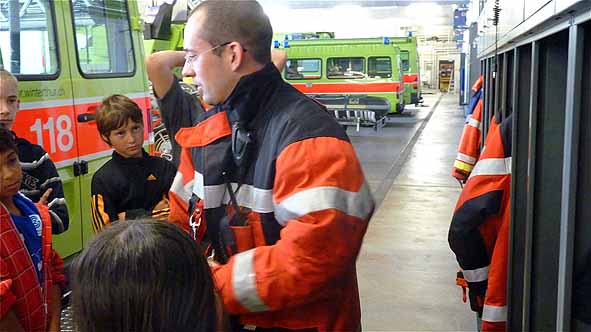 | Die Feuerwehr ist hochmodern. | Herr Mühlemann erklärt uns den Feuerwehralltag. | |
