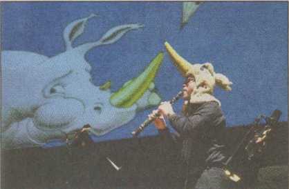 vom Himmel und haute dem Nashorn eine hinter die Ohren, nahm die Geige und verschwand.